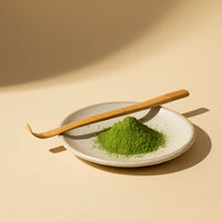 Le chashaku est la cuillère traditionnelle japonaise utilisée pour doser le matcha. Sculptée dans un seul morceau de bambou, sa forme fine et légèrement courbée permet de prélever facilement la poudre sans la tasser.