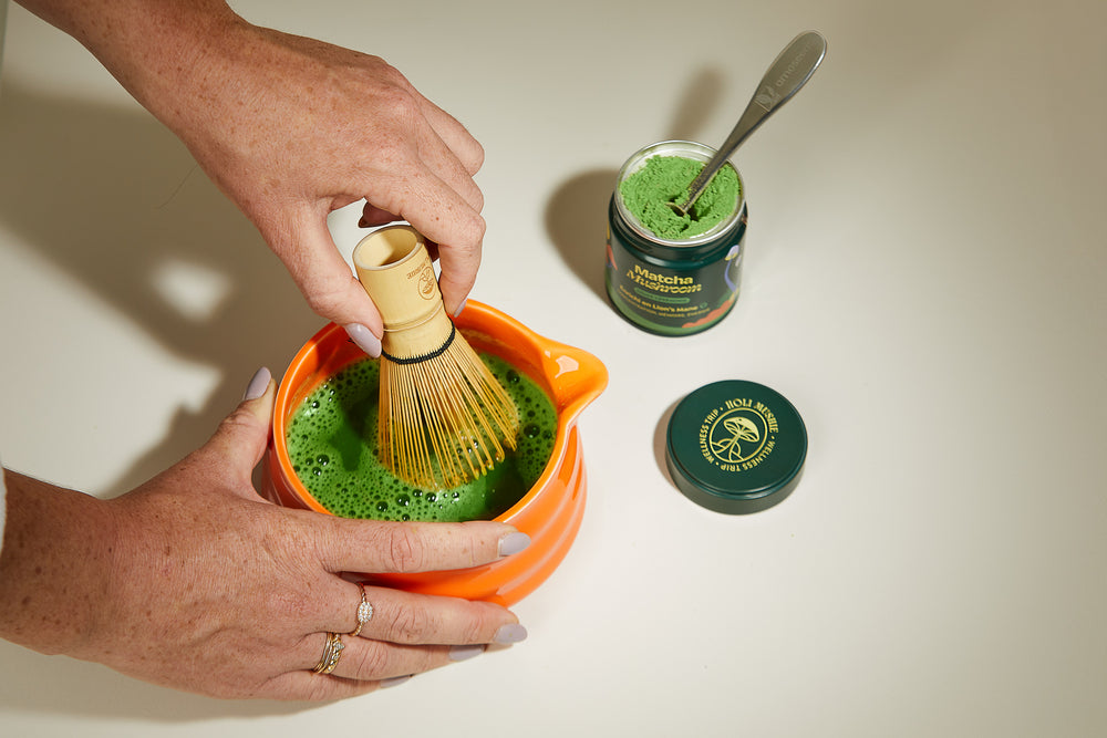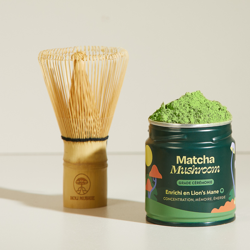 Matcha bio grade cérémonie récolté à Uji (Kyoto), enrichi en extrait de Lion’s Mane. Une boisson douce, sans amertume, pensée pour remplacer le café et booster votre focus au quotidien.